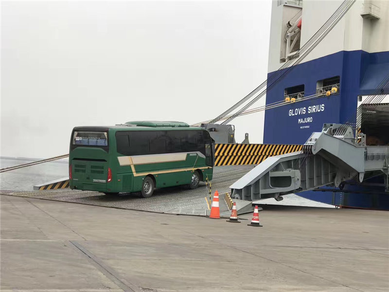 A ro-ro ship is also called a "open-and-down" ship, or a "roll-up-and-roll" ship. It is a special ship that uses cargo vehicles to carry cargo. The cargo loading and unloading is not carried vertically from the cargo hatch on the deck. Out, but through the opening of the ship's first, last or both sides of the ship and the springboard to the dock, drive the powered vehicle directly to the ship or use the trailer or forklift truck to bring the container or cargo together with the wheeled chassis. A ship that is transported to the dock by a ship.